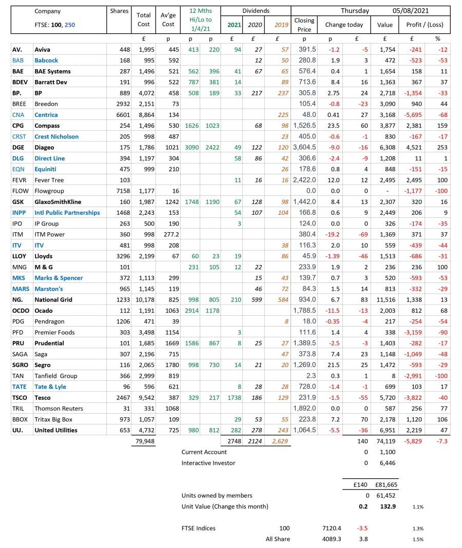 as at close of business Thursday 5 August 2021