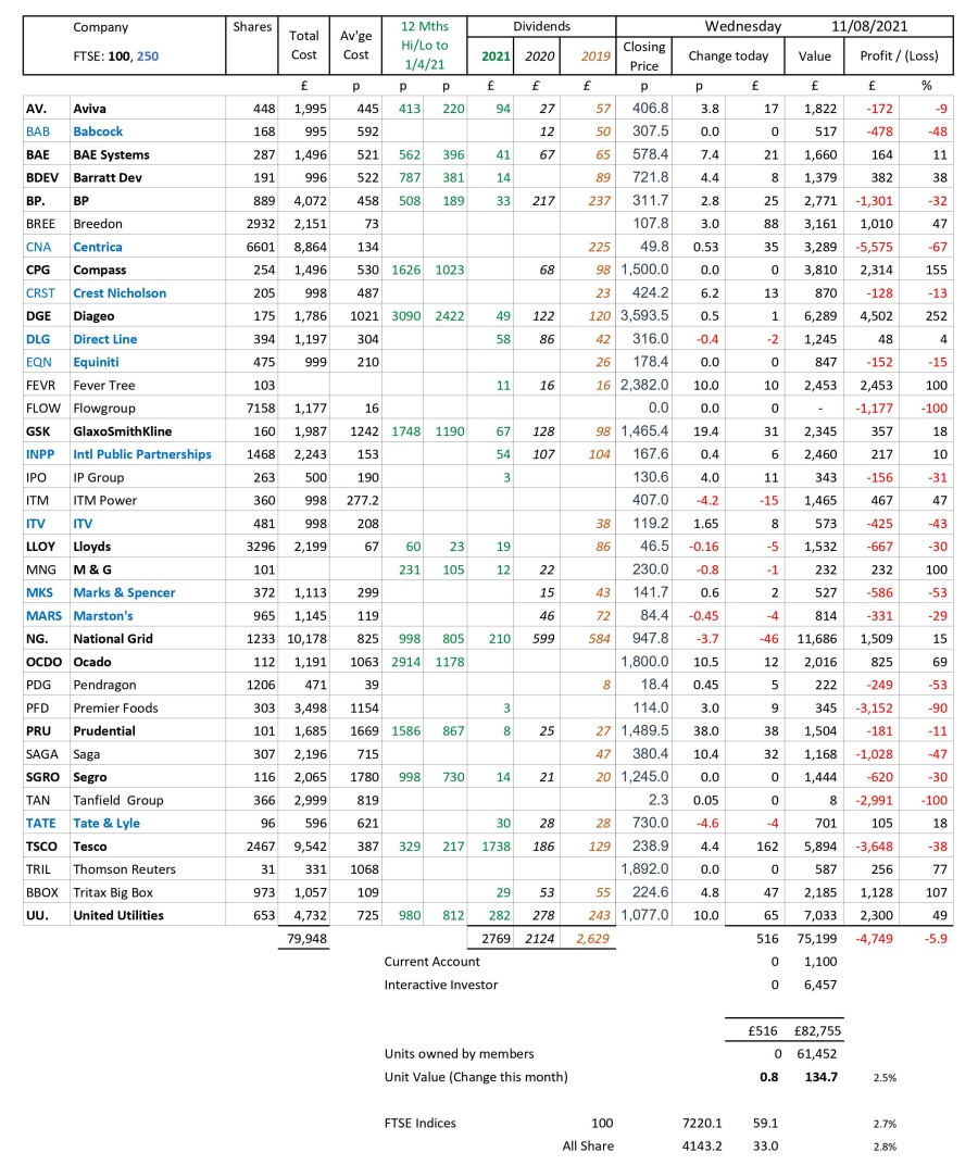 as at close of business Wednesday 11 August 2021