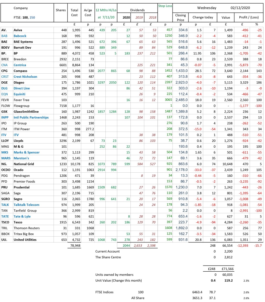 as at close of business Wednesday 2 December 2020