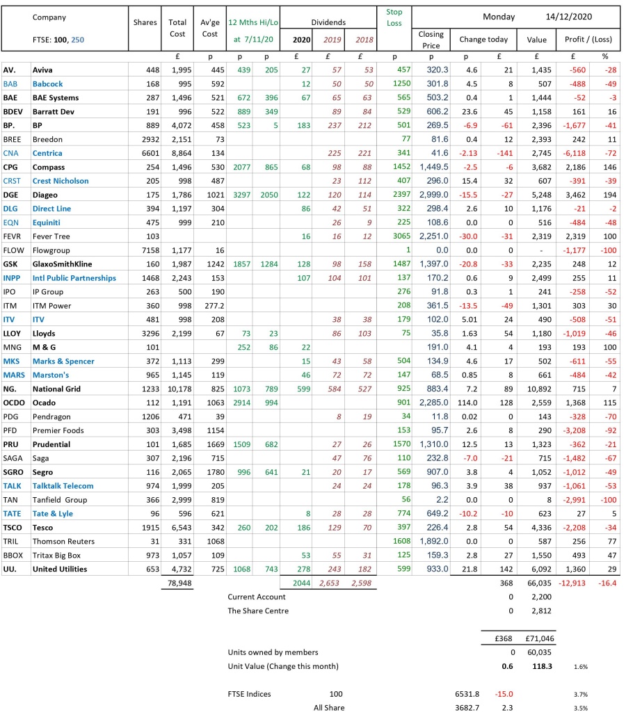 as at close of business Monday 14 December 2020