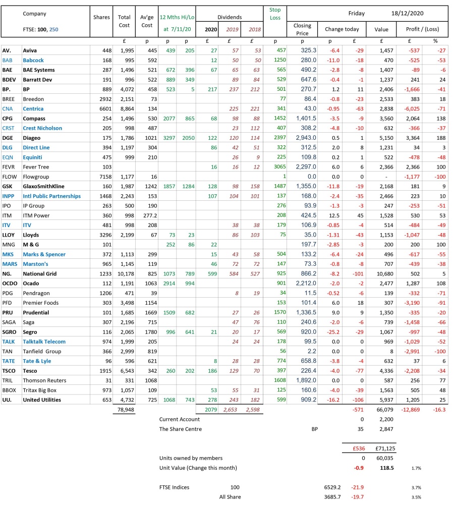 as at close of business Friday 18 December 2020