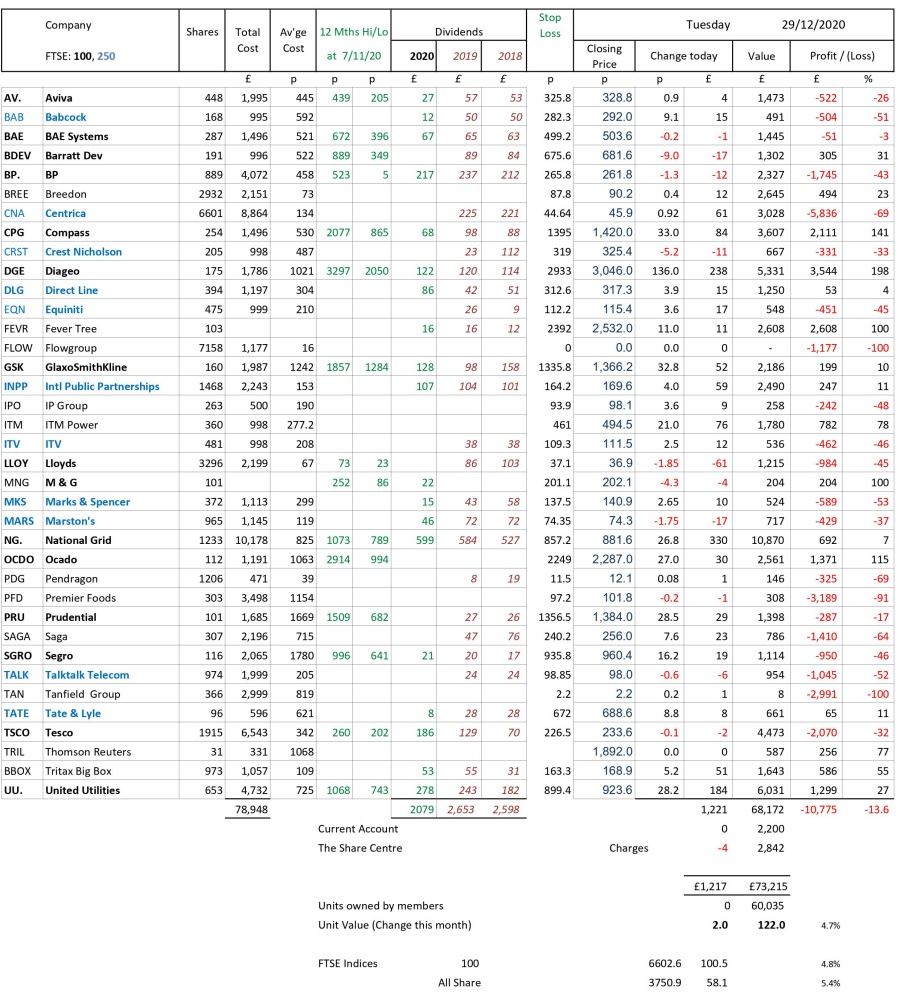 as at close of business Tuesday 29 December 2020
