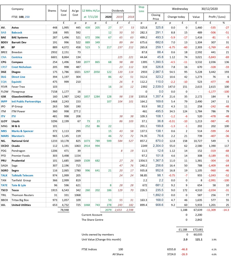 as at close of business Wednesday 30 December 2020