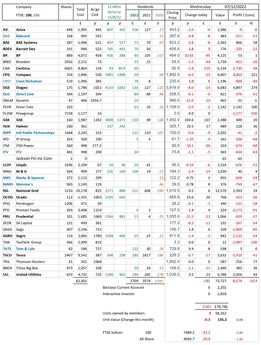 as at close of business Wednesday 7 December 2022