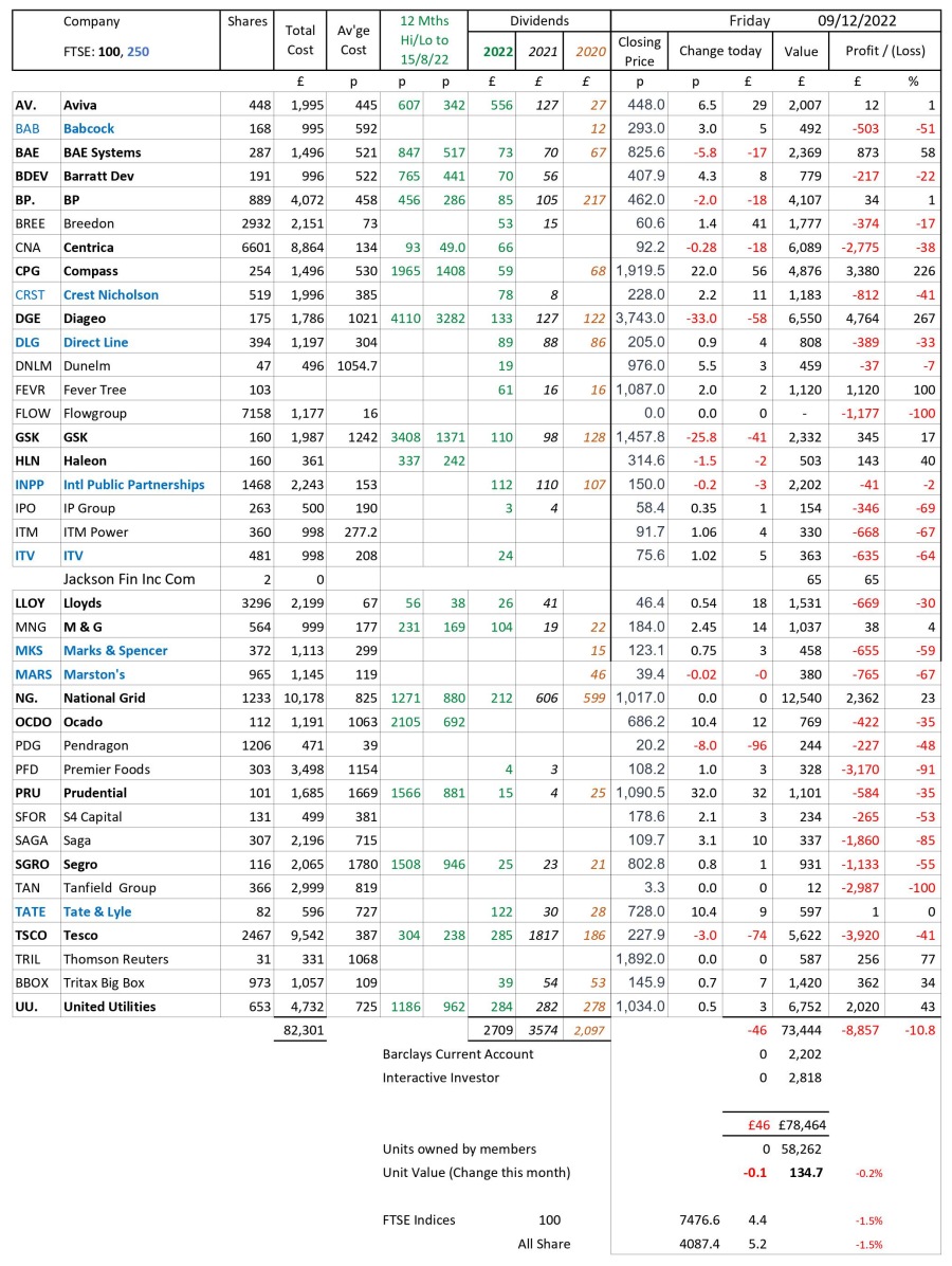 as at close of business Friday 9 December 2022