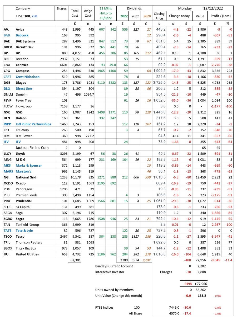 as at close of business Monday 12 December 2022