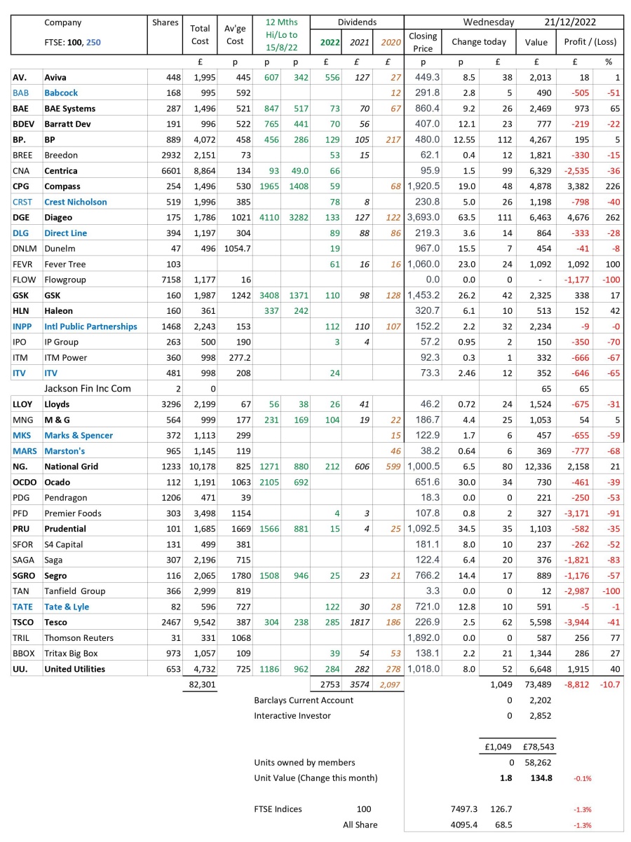 as at close of business Wednesday 21 December 2022