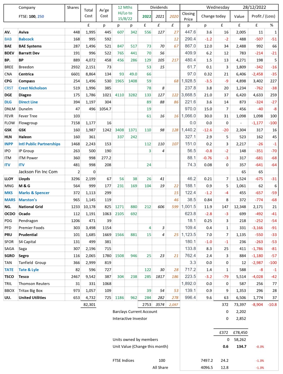 as at close of business Wednesday 28 December 2022