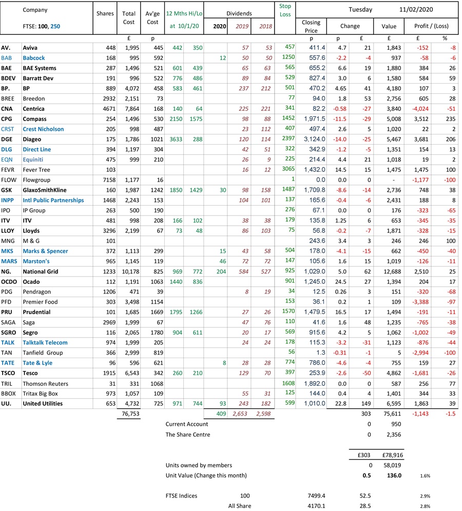 as at close of business Tuesday 11 February 2020