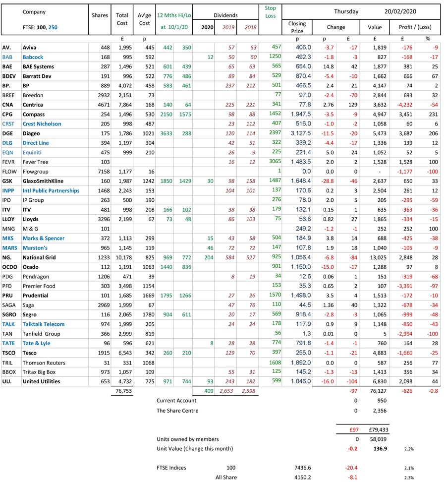 as at close of business Thursday 20 February 2020