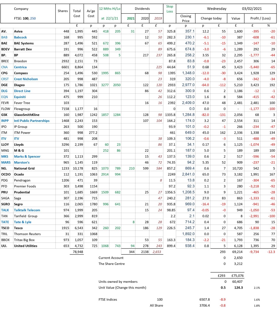 as at close of business Wednesday 3 February 2021