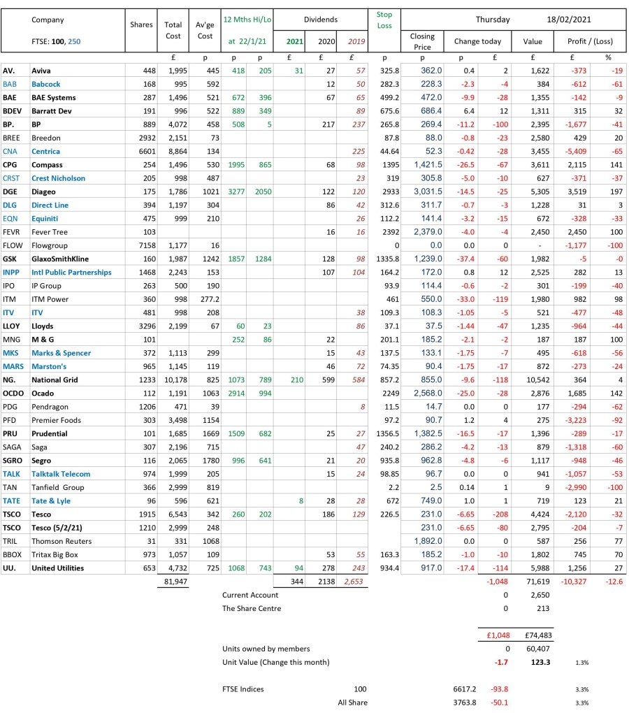 as at close of business Thursday 18 February 2021