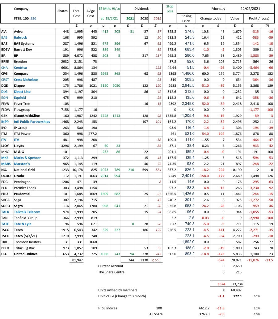 as at close of business Monday 22 February 2021