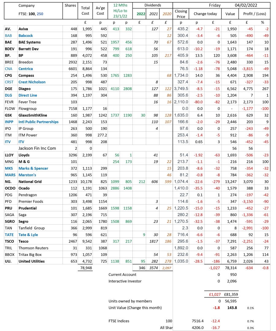 as at close of business Friday 4 February 2022