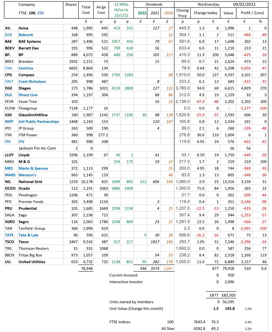 as at close of business Wednesday 9 February 2022