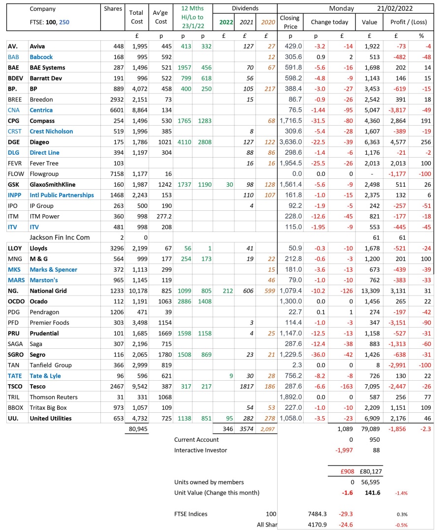 as at close of business Monday 21 February 2022