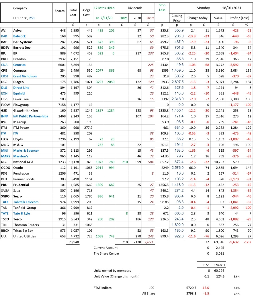 as at close of business Monday 18 January 2021