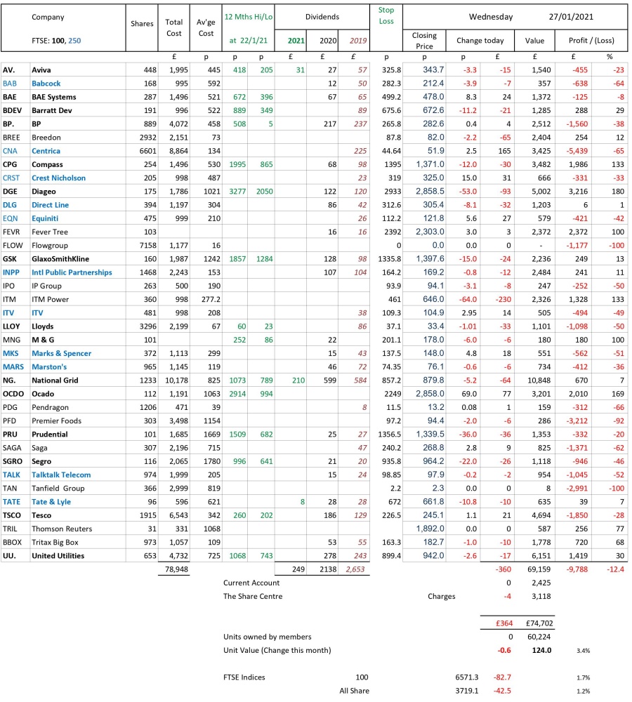 as at close of business Wednesday 27 January 2021