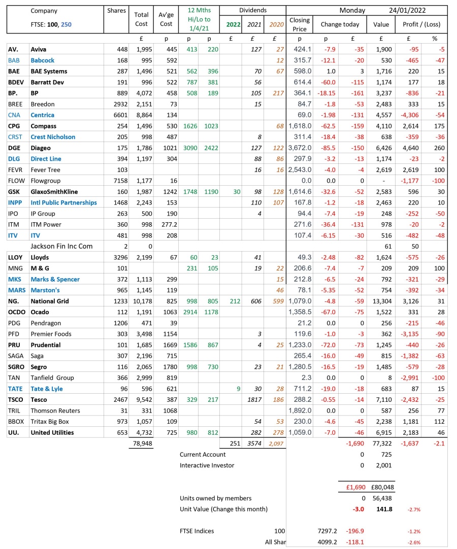 as at close of business Monday 24 January 2022