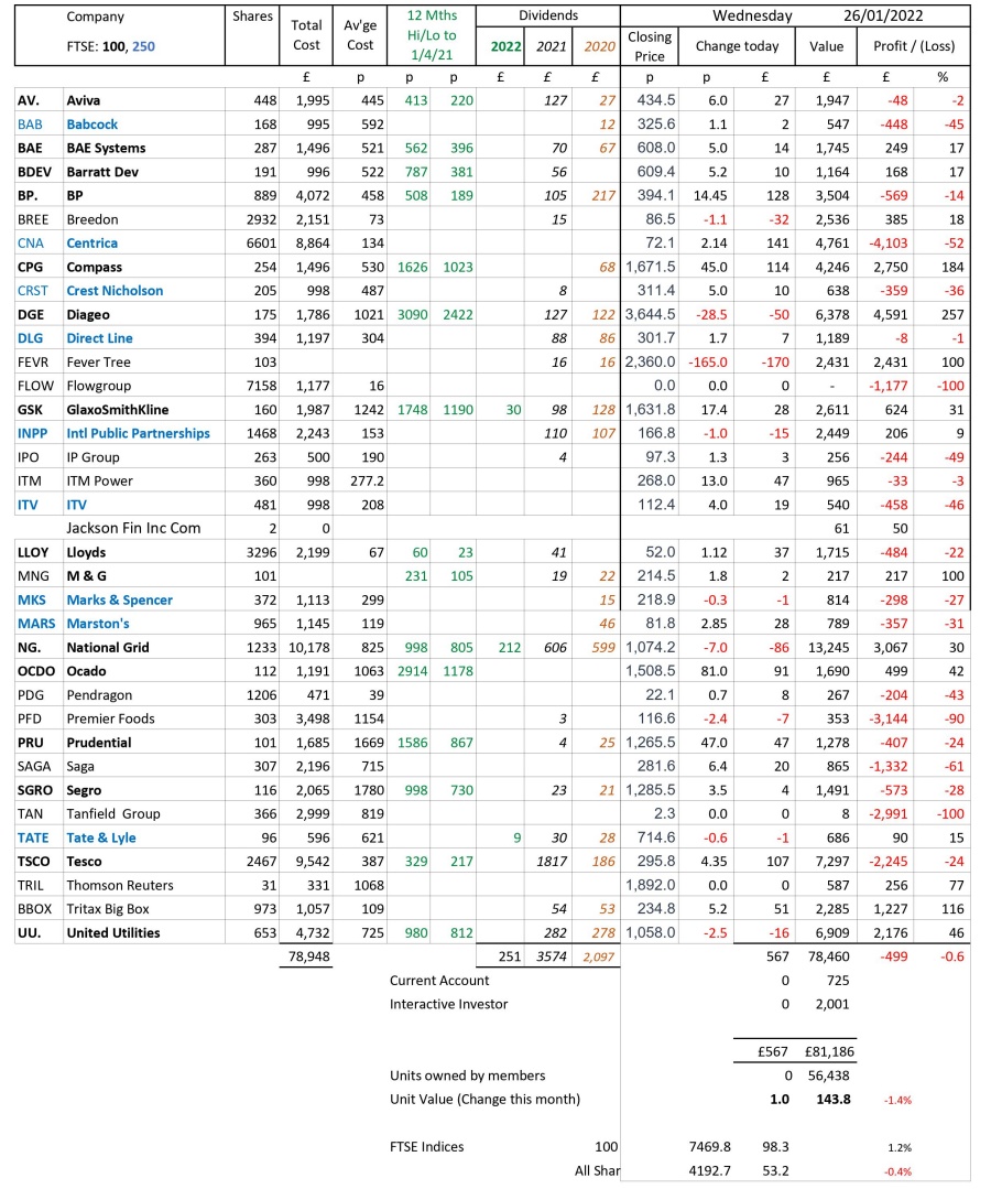 as at close of business Wednesday 26 January 2022