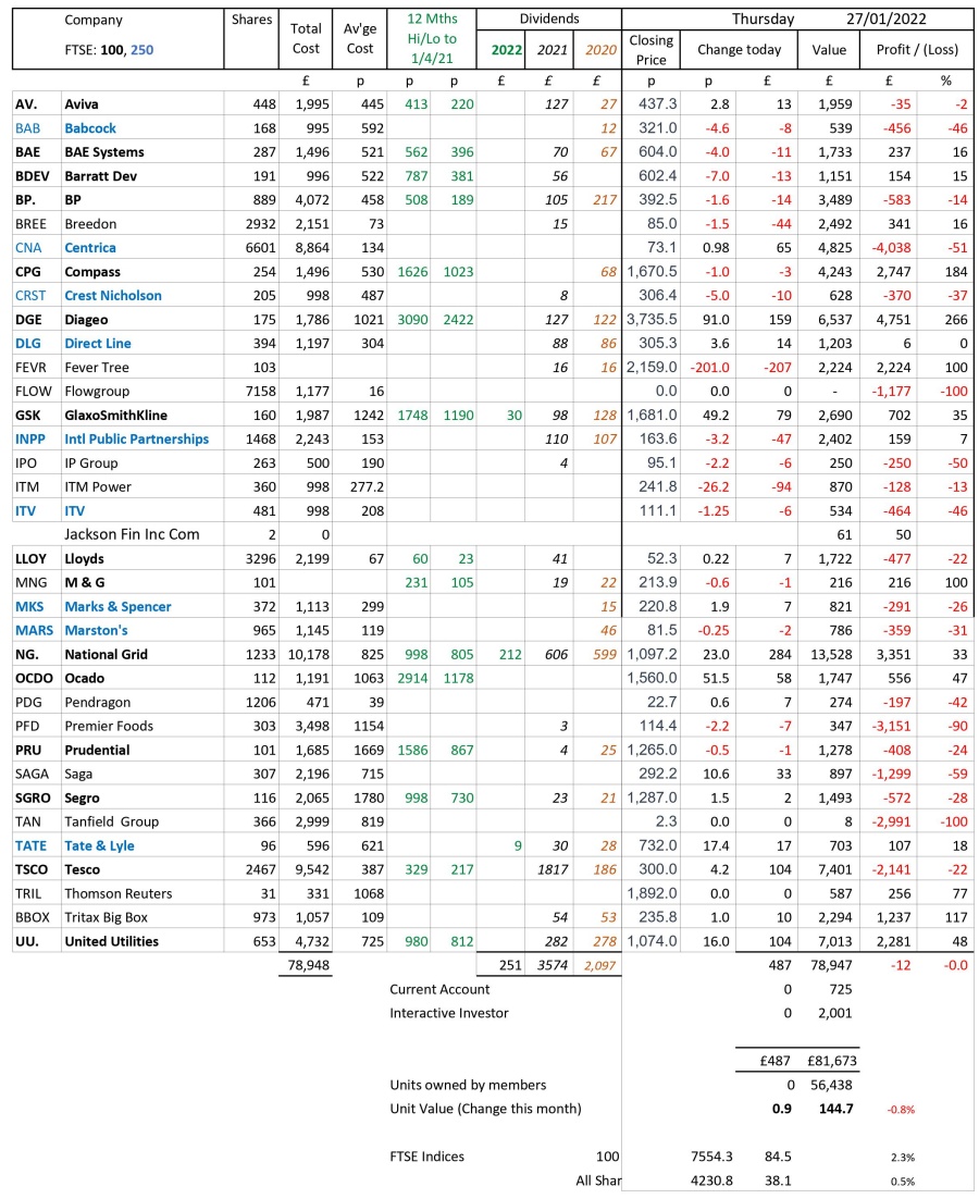 as at close of business Thursday 27 January 2022