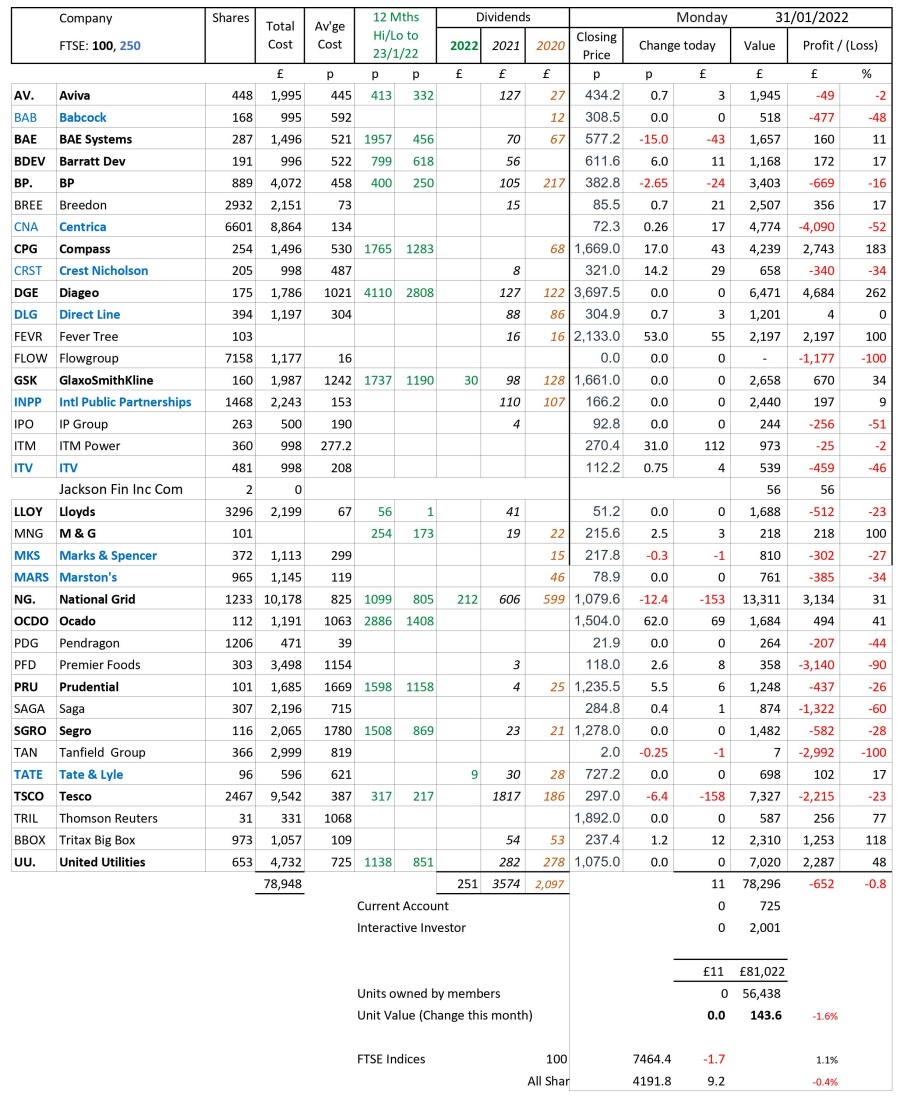 as at close of business Monday 31 January 2022