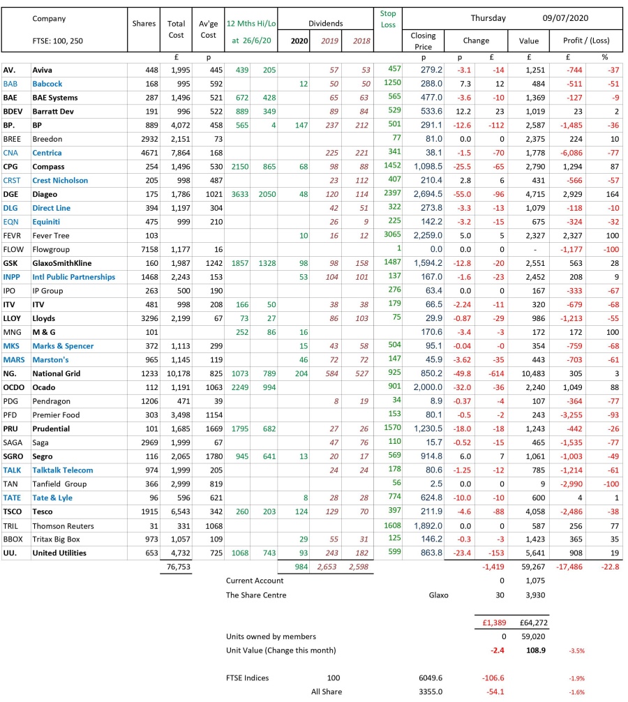 as at close of business Thursday 9 July 2020