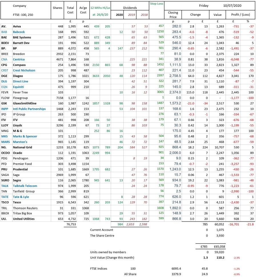 as at close of business Friday 10 July 2020