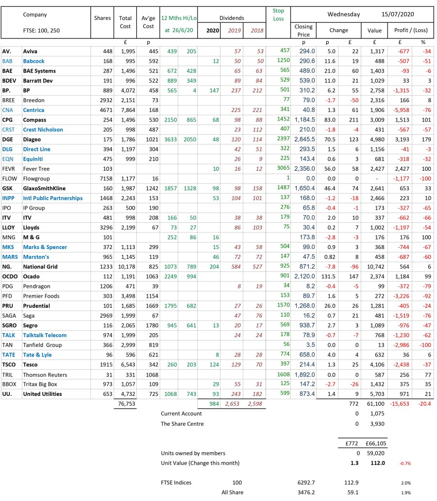 as at close of business Wednesday 15 July 2020