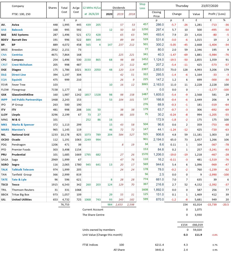 as at close of business Thursday 23 July 2020