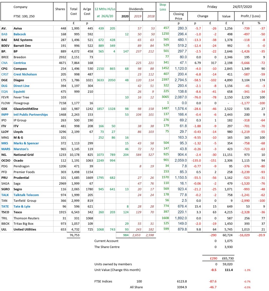 as at close of business Friday 24 July 2020