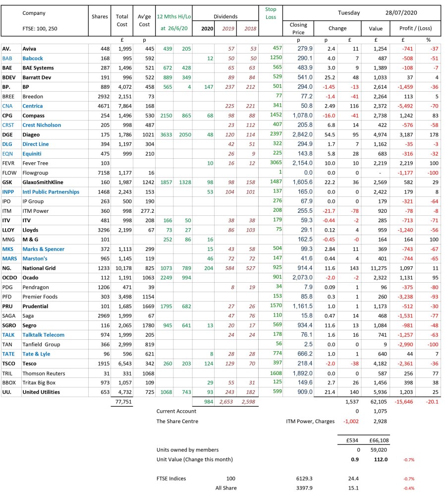 as at close of business Tuesday 28 July 2020