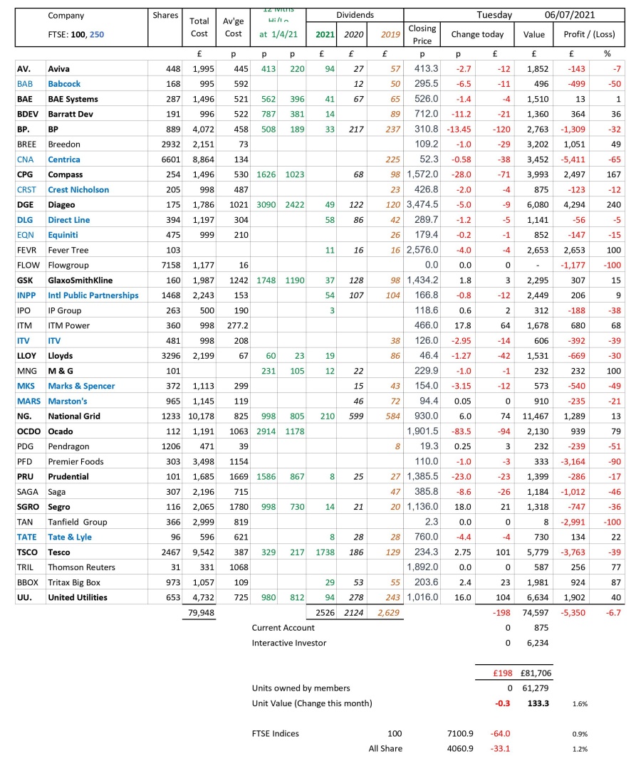 as at close of business Tuesday 6 July 2021