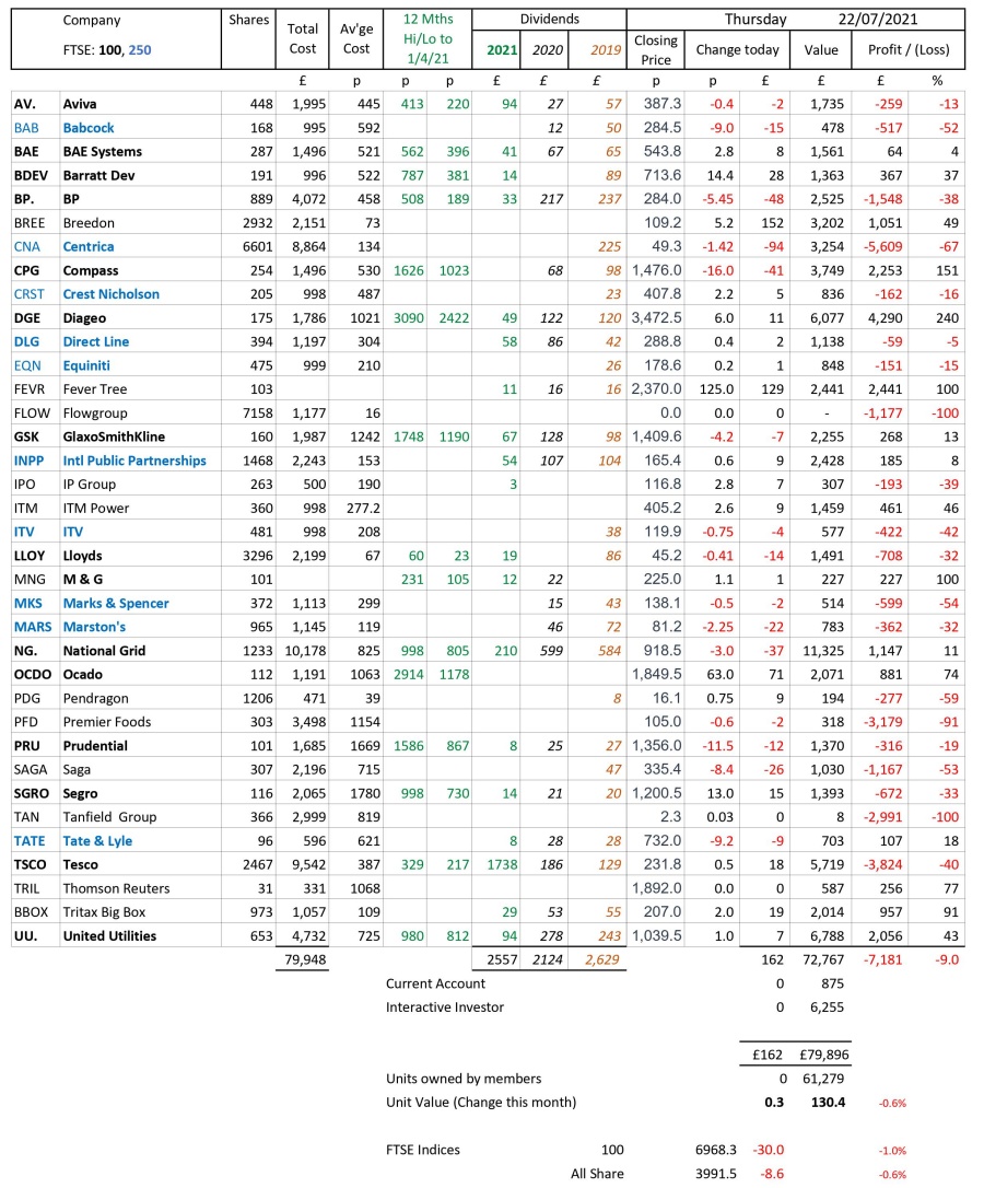 as at close of business Thursday 22 July 2021
