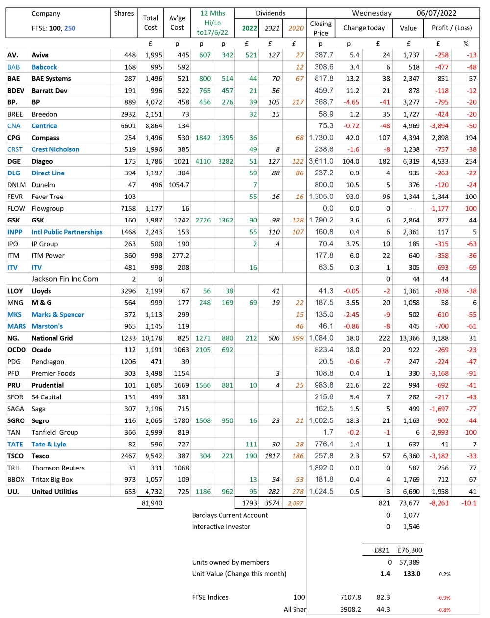 ExEC Investment Club - Unit Valuation