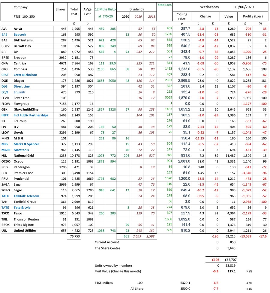 as at close of business Wednesday 10 June 2020