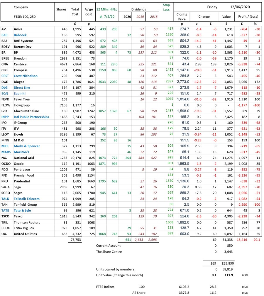 as at close of business Friday 12 June 2020