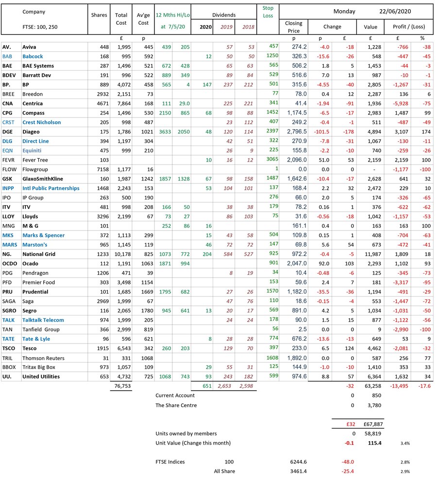 as at close of business Monday 22 June 2020