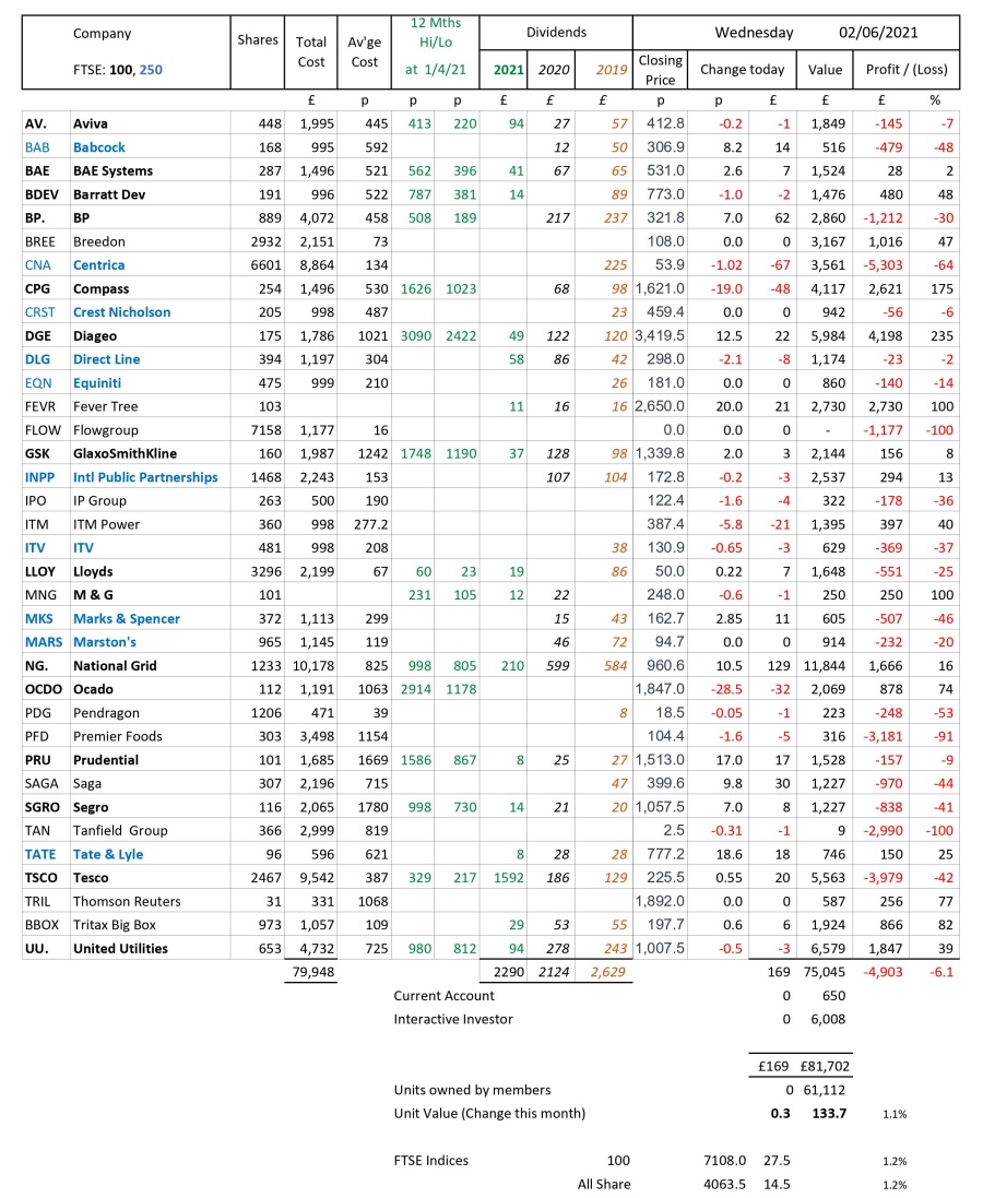 as at close of business Wednesday 2 June 2021