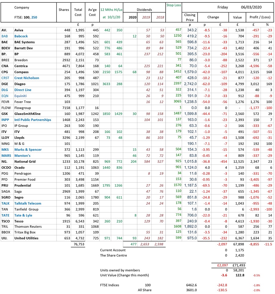 as at close of business Friday 6 March 2020