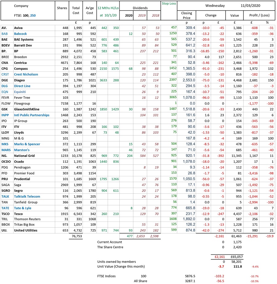 as at close of business Wednesday 11 March 2020
