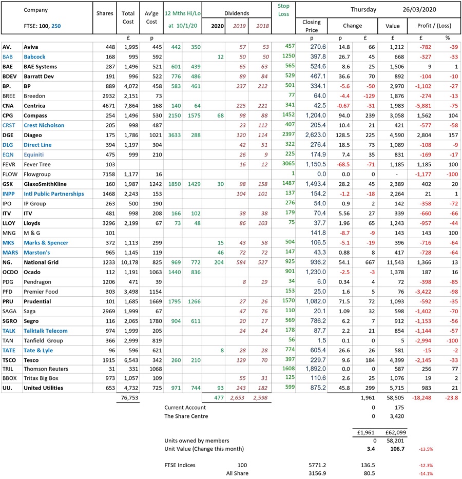 as at close of business Thursday 26 March 2020