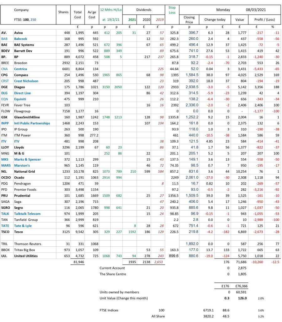 as at close of business Monday 8 March 2021