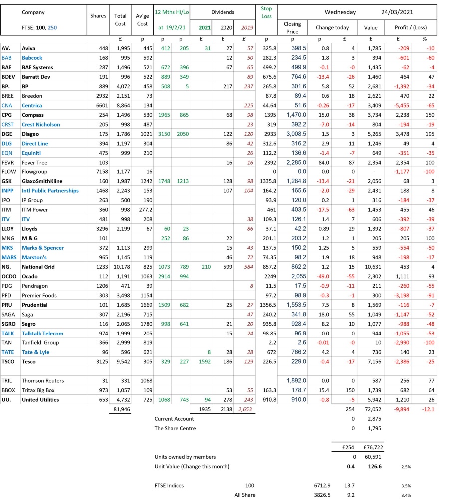 as at close of business Wednesday 24 March 2021