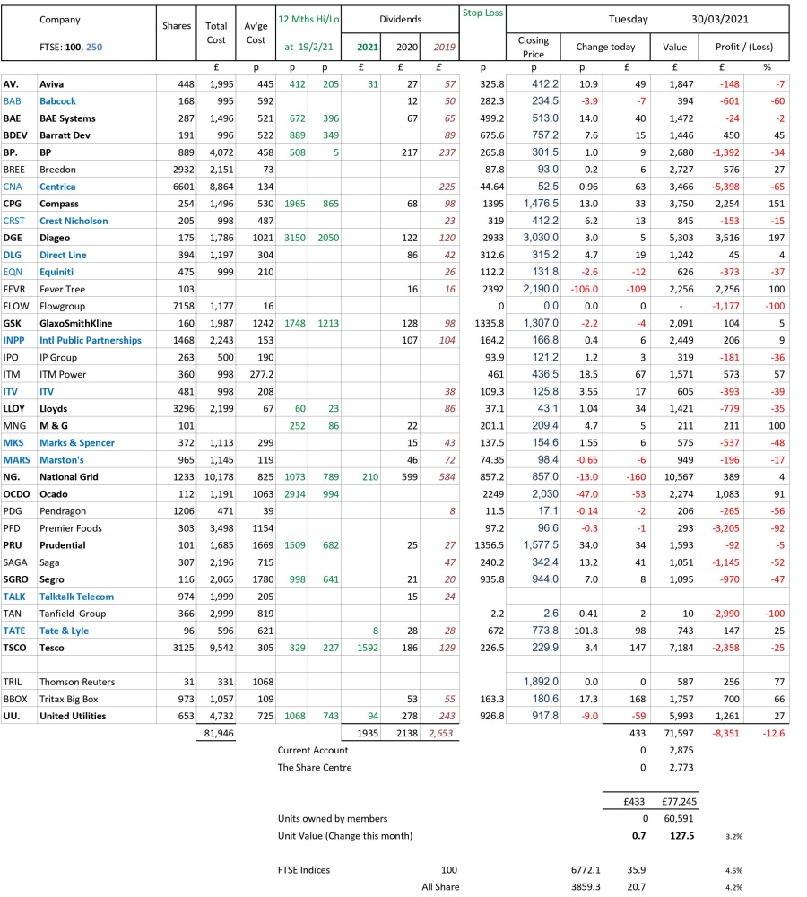as at close of business Tuesday 30 March 2021