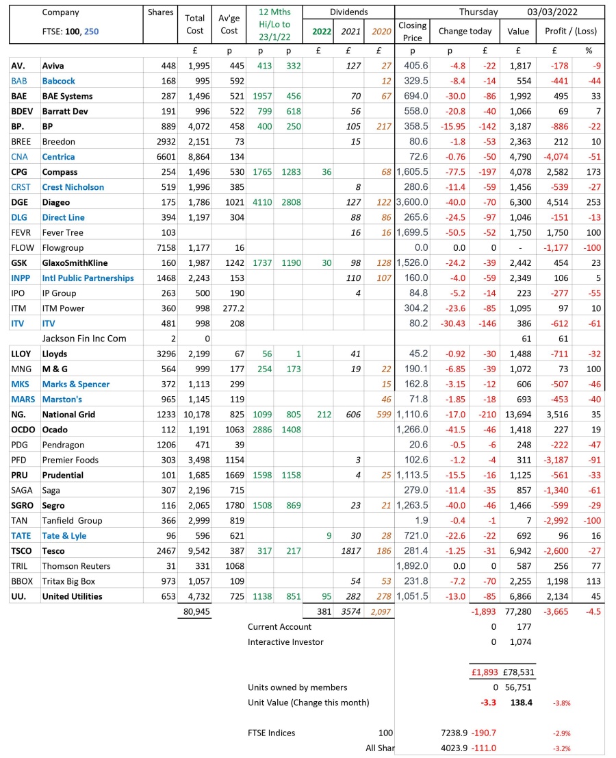 as at close of business Thursday 3 March 2022