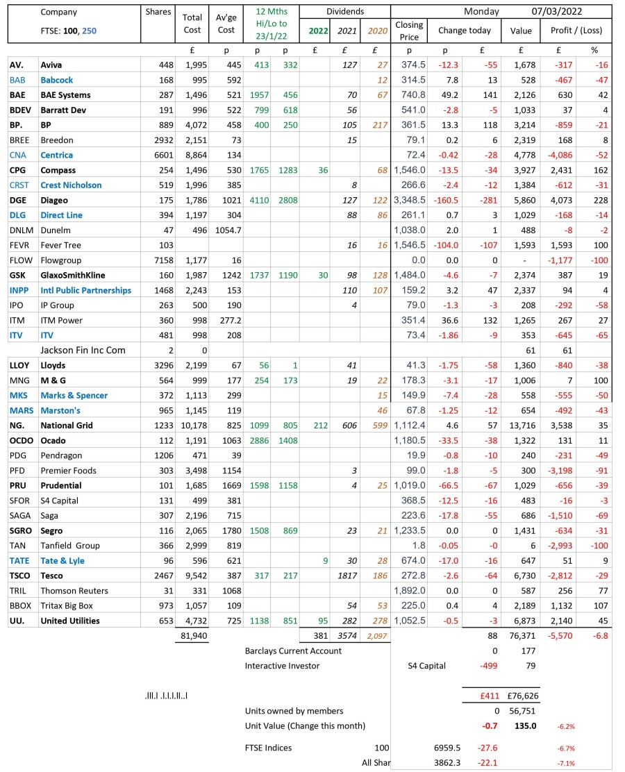 as at close of business Monday 7 March 2022