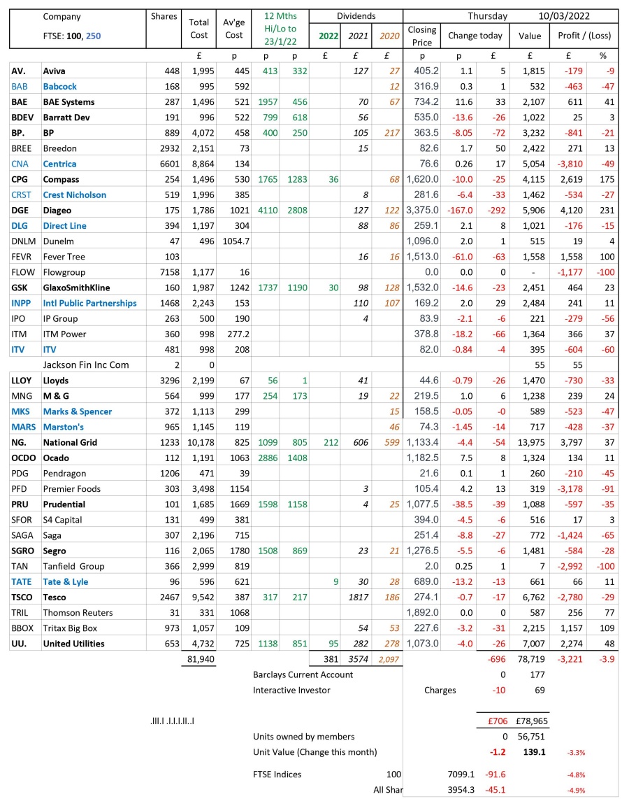 as at close of business Thursday 10 March 2022