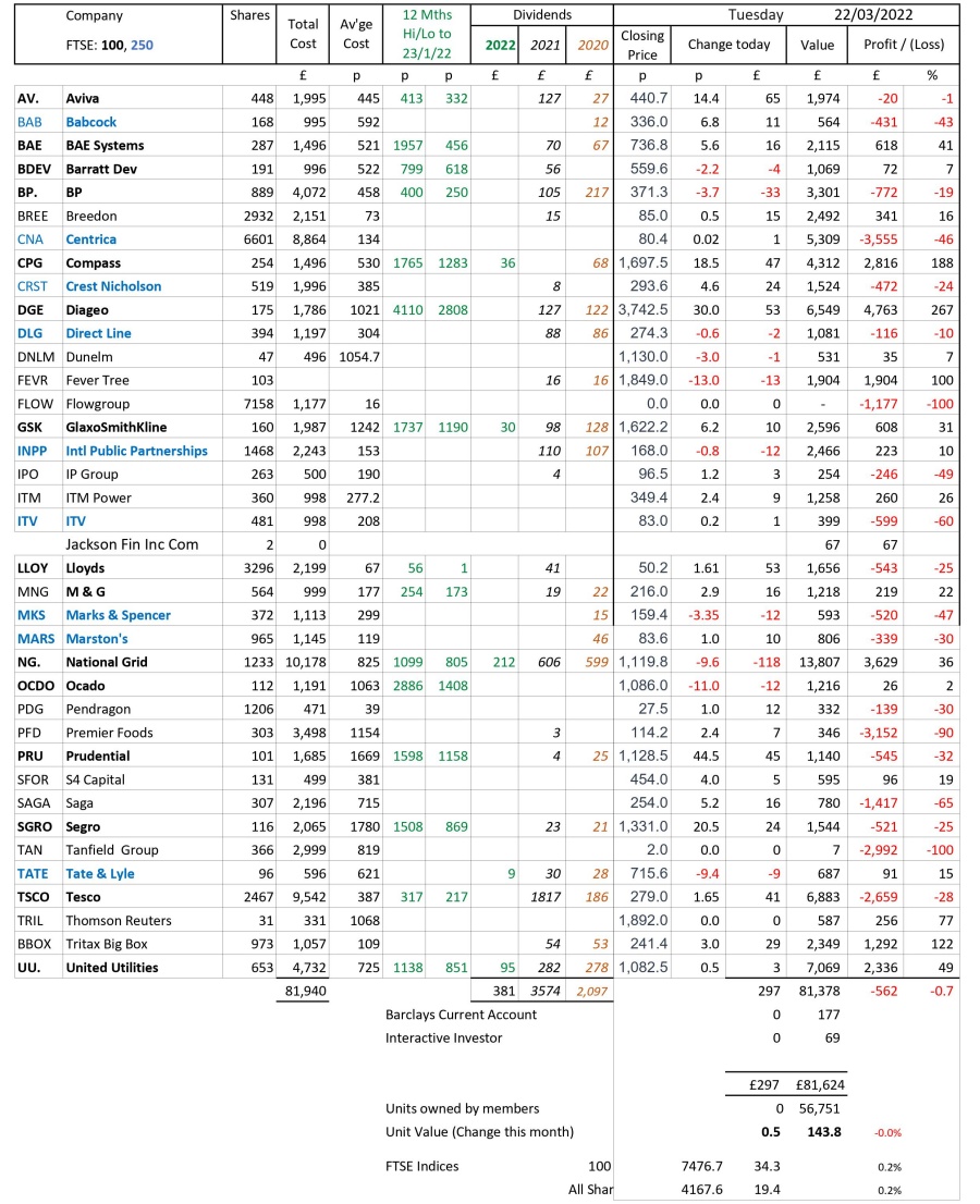 as at close of business Tuesday 22 March 2022
