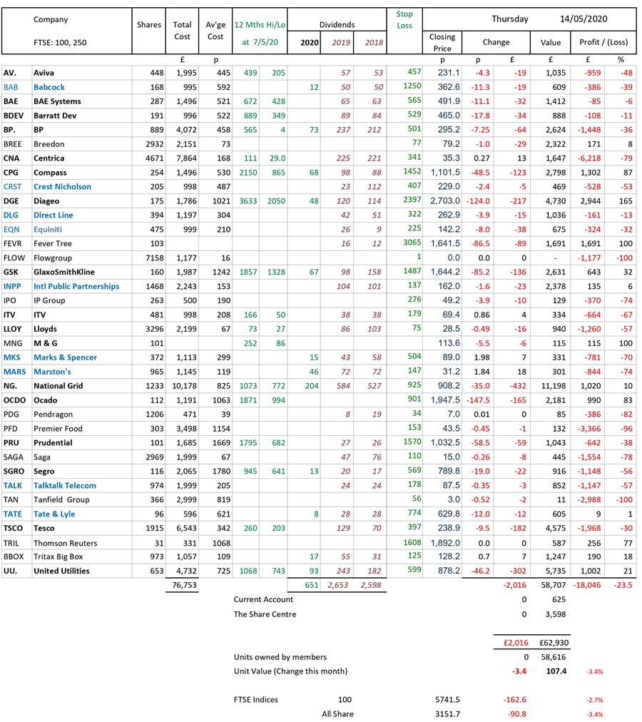 as at close of business Thursday 14 May 2020
